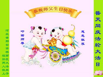 河北省邢台市桥西区大法弟子祖孙两人恭祝师父生日快乐!普天同庆世界法轮大法日!