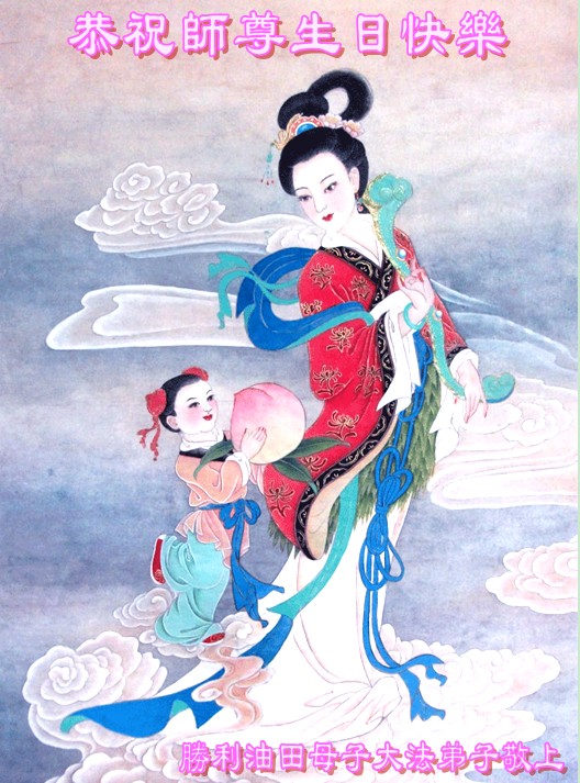 胜利油田母子大法弟子恭祝慈悲伟大的师尊生日快乐!恭贺世界法轮大法日!