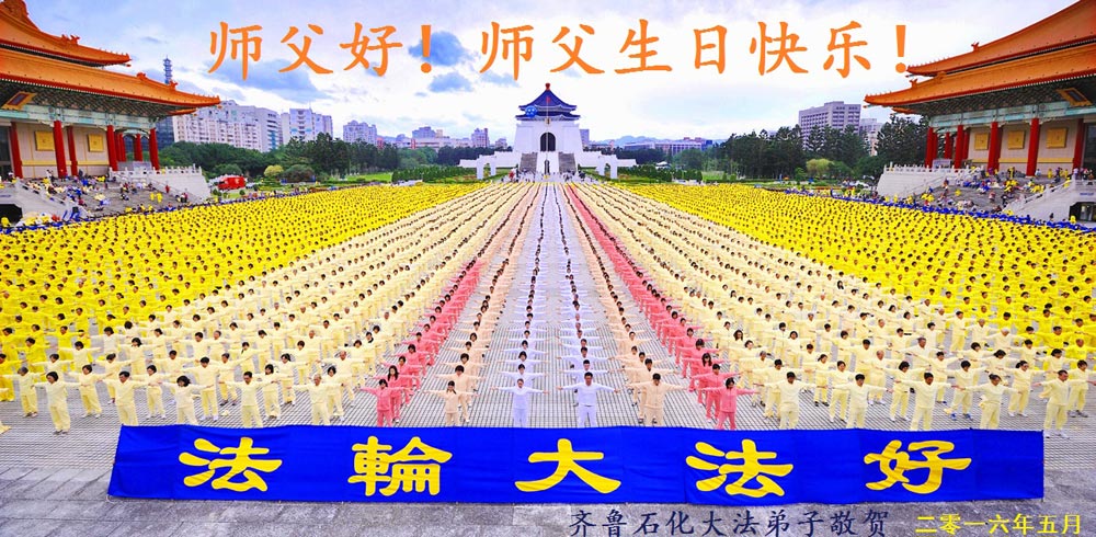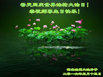 恭庆欢庆法轮大法洪传二十四周年暨第十七届世界法轮大法日! 齐鲁石化大法弟子恭祝师父生日快乐!普天同庆世界法轮大法日!