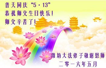 二零一六年五月九日 山东潍坊大法弟子恭祝师尊生日快乐!