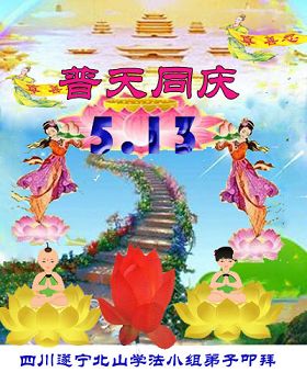 师父,您辛苦了!弟子一定听您的话,修炼如初,做好您教导的三件事,早日修炼圆满,跟师父回家。 四川遂宁市大法弟子恭祝师尊生日快乐!普天同庆5.13世界法轮大法日!