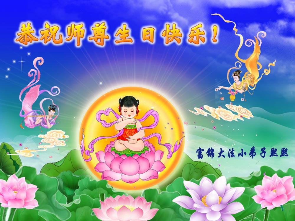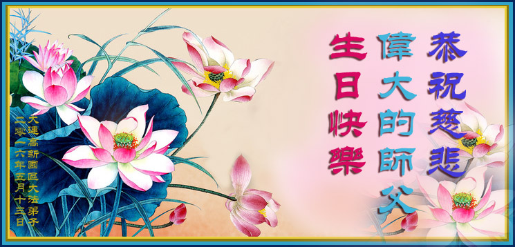 师父您辛苦了!弟子感恩师父的慈悲苦度,在最后的时间里唯有精進实修,做好三件事,助师正法救度众生,兑现誓约。 新洪宇 师恩浩荡大法传 救度众生危难前 正法洪势震天宇 巨难何为 威德无量 一念重开新洪宇 辽宁大连高新园区的大法弟子恭祝慈悲伟大的师父生日快乐!