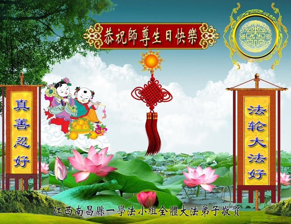 恭祝伟大慈悲的师尊生日快乐!庆贺5.13世界法轮大法日好! 江西南昌县全体大法弟子恭祝世界法轮大法日!