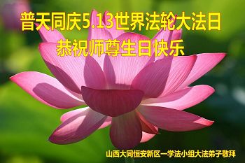 山西省大同市恒安新区全体大法弟子恭祝师尊生日快乐!