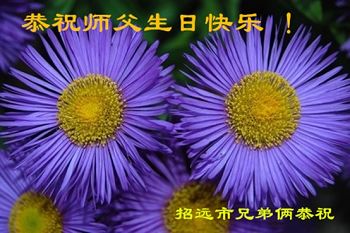 山东省烟台市招远市兄弟俩大法弟子恭祝师尊生日快乐!