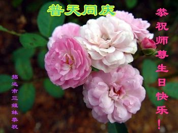 师尊辛苦了!恭祝师尊生日快乐!庆祝世界法轮大法日!庆祝法轮大法洪传二十四周年!弟子们想念您!在最后的修炼道路上,我们正定县全体大法弟子一定要做好三件事,跟上正法進程,救度更多的众生! 正定县全体大法弟子合十叩拜! 广东省梅州市梅县区的母女大法弟子及明真相的家人恭祝慈悲伟大的师尊生日快乐!普天同庆五一三世界法轮大法日!