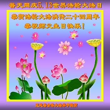 普天同庆世界法轮大法日! 山东省教育系统大法弟子敬上 黑龙江省佳木斯大学一大法弟子及家属丈夫、女儿恭祝恩师生日快乐!