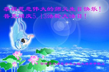 同庆同贺世界法轮大法日!同庆同贺大法洪传24周年! 师父为我付出,承受,给予太多太多,得法19年了,虽每天能听到师父声音,可我从来没有见过师父,特盼师父早日归来,这是我们大陆大法弟子的共同期盼! 吉林市昌邑区大法弟子恭祝师尊生日快乐!