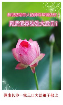 庆祝世界法轮大法日! 湖南大法弟子和全家人恭祝慈悲伟大的师尊生日快乐!恭贺世界法轮大法日!庆祝法轮大法洪传24周年!