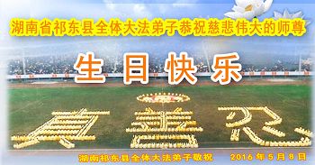 在这普天同庆同贺同颂的日子里,为世界法轮大法日而庆贺,为迎来慈悲伟大的师尊华诞而庆贺!为我们能成为正法时期的大法徒而感到无比自豪和幸福。众生在觉醒,邪*党-在解体!慈悲而伟大的师父啊!我们大陆大法弟子想念您!盼师父早日回国!千言万语难以表达弟子们对师父的感激之情,唯有多救众生与精進实修。 湖南省娄底市新化县、冷水江市全体大法弟子恭祝慈悲伟大的师父生日暨法轮大法洪传二十四周年!