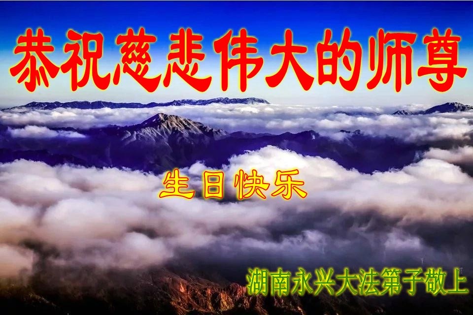 师尊您辛苦了!弟子感谢师尊的佛恩浩荡,慈悲苦度!弟子怀着无限感恩的心情,衷心祝愿慈悲伟大的师尊生日快乐!弟子决心抓紧时间,尽快修好自己,转变自己的观念,修去人心,清除邪*党-文化的毒素。以修炼如初的心态抓紧时间多救人,坚定的走正、走好正法路,兑现自己的史前大愿,圆满随师还。合十!叩拜师尊! 湖南省郴州市全体大法弟子恭祝慈悲伟大的师父生日快乐!
