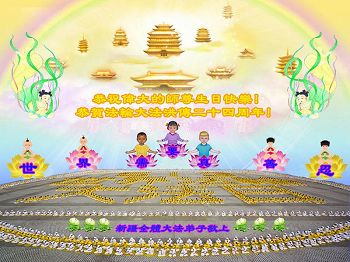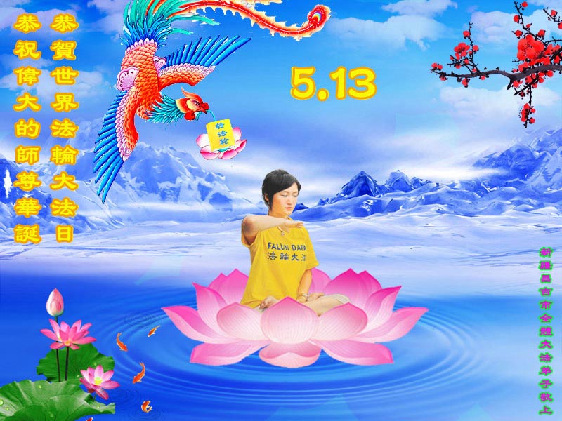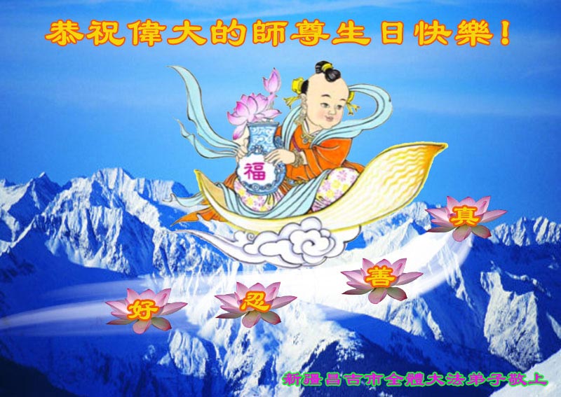 新疆维吾尔自治区全体大法弟子恭祝伟大的师尊生日快乐!恭贺法轮大法洪传二十四周年!