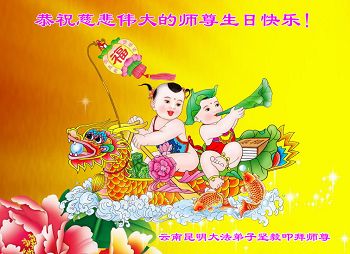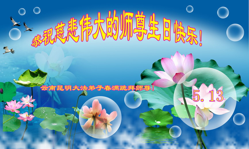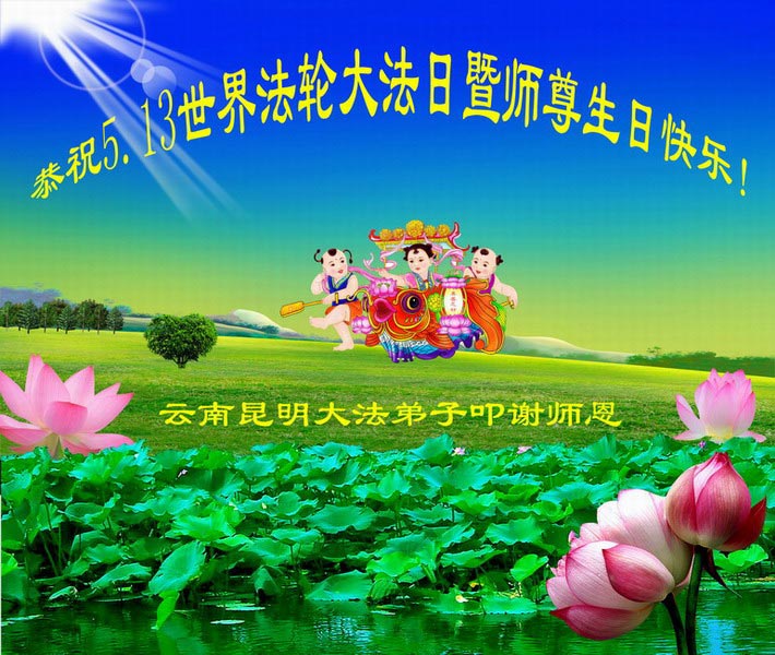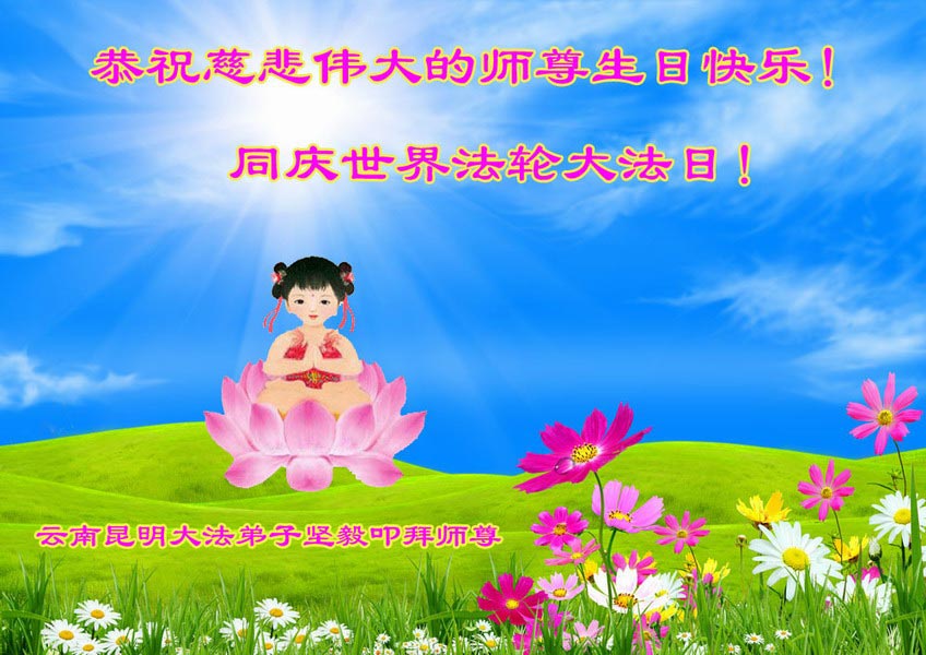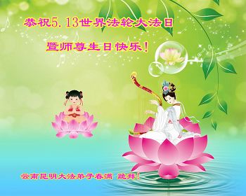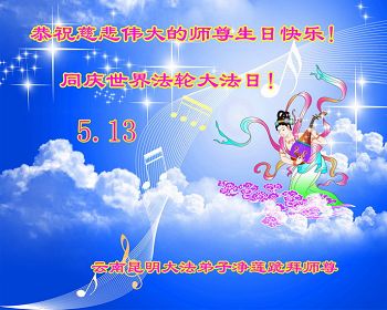 云南昆明大法弟子恭贺师尊华诞暨世界法轮大法日!