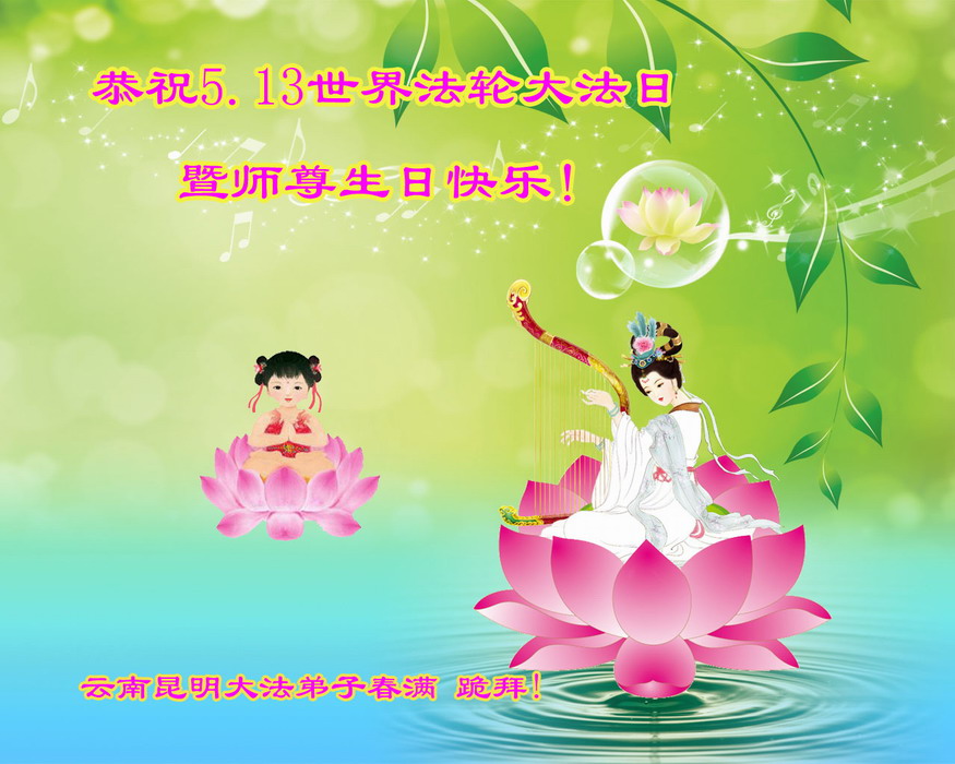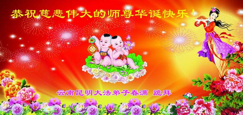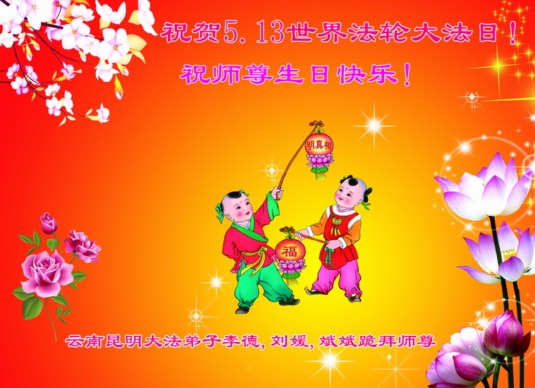 云南一大法弟子及家人敬祝 云南昆明大法弟子恭贺师尊华诞暨世界法轮大法日!