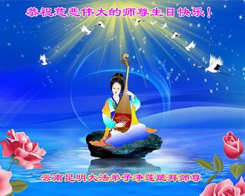 同祝师尊华诞! 神歌仙舞同颂世界法轮大法日! 做出精彩美丽的多种资料,多救众生,完成使命,早日随师回!形成强大的整体,解体邪恶,早日结束迫害,做合格大法造就的神! 谢师尊救度造化之洪恩! 笃诚的跪拜叩头 合十 浙江省温州市瑞安市三人学法小组大法弟子祝师尊生日快乐!