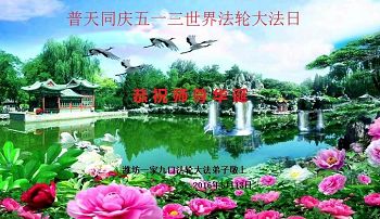 山东潍坊临朐一姐妹大法弟子恭祝慈悲伟大的师尊生日快乐!恭贺世界法轮大法日!