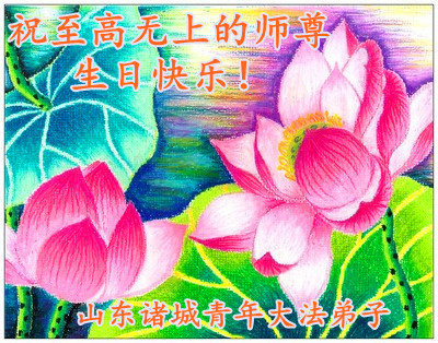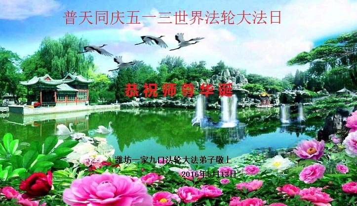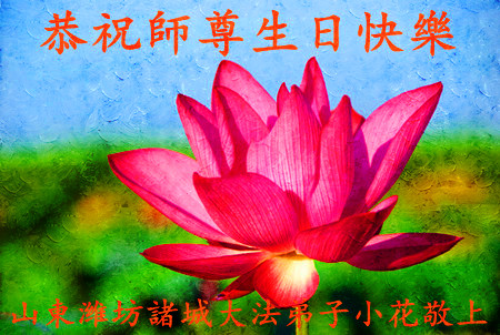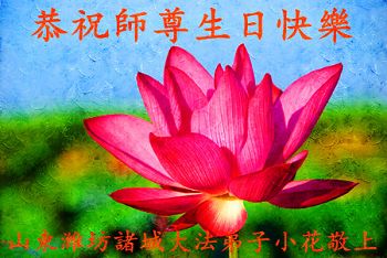 山东省潍坊一家九位大法弟子恭祝师尊生日快乐!