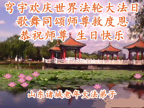 山东省潍坊市大法弟子恭祝慈悲伟大的师尊生日快乐!