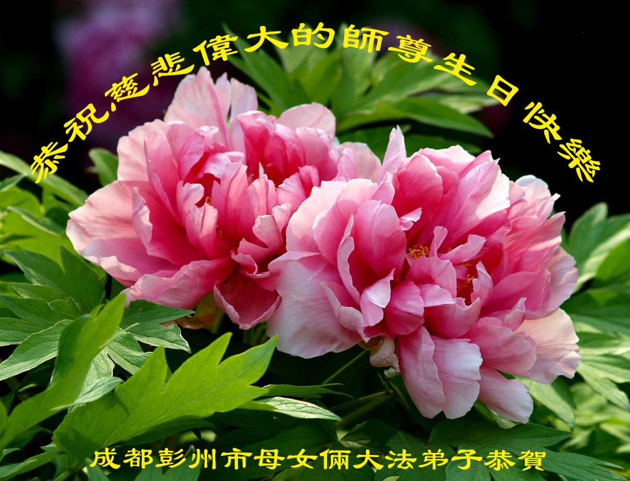 在这特殊喜庆的日子里,弟子沐浴着浩荡的佛恩,内心油然而生出对师父无限的敬仰和诚挚的感恩,用尽人类最美好的语言也无法表达对师父和大法的赞颂,千言万语汇成一句话:师父辛苦了,弟子感谢您!敬爱的师父,是您把我们从地狱中捞起,又给我们洗净,引领着我们一步步走向修炼道路,二十多年来大法弟子锻炼成熟了,大法的光辉照亮了全世界,创造了人类历史上前所未有的辉煌。大法弟子经历魔难修炼这么多年,真切的感受到了师尊无事无处不在慈悲呵护着我们、看护着我们,也深知师尊为了挽救苍穹及众生吃了无数的苦,遭了无数的罪,为了我们大法弟子操碎了心。谁都知道,师父用人类无法想象的巨大承受给大法弟子带来了宝贵的修炼时间与众生能够得救的机缘。师恩浩荡,弟子无以为报,唯有在大法中勇猛精進,用“真、善、忍”大法严格要求自己,更加努力,实实在在的做好三件事,静心学好法,实修自己,从根本上改变常人的观念,利用各自的条件,让更多的世人了解真相,得到救度。整体配合,利用多种方法多救人,快救人。修炼如初,正念正行,不辜负师尊的慈悲救度和殷切期望,无愧于正法时期大法弟子的伟大称号,修好自己,紧跟师父走好最后的路,履行大法弟子救度众生的神圣使命,走好回归路,请师父放心。合十! 四川省成都三姊妹恭祝慈悲伟大的师尊生日快乐!恭贺第十七届世界法轮大法日!