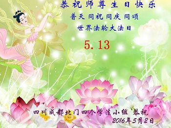 四川成都北门四个学法小组大法弟子恭祝师尊生日快乐!