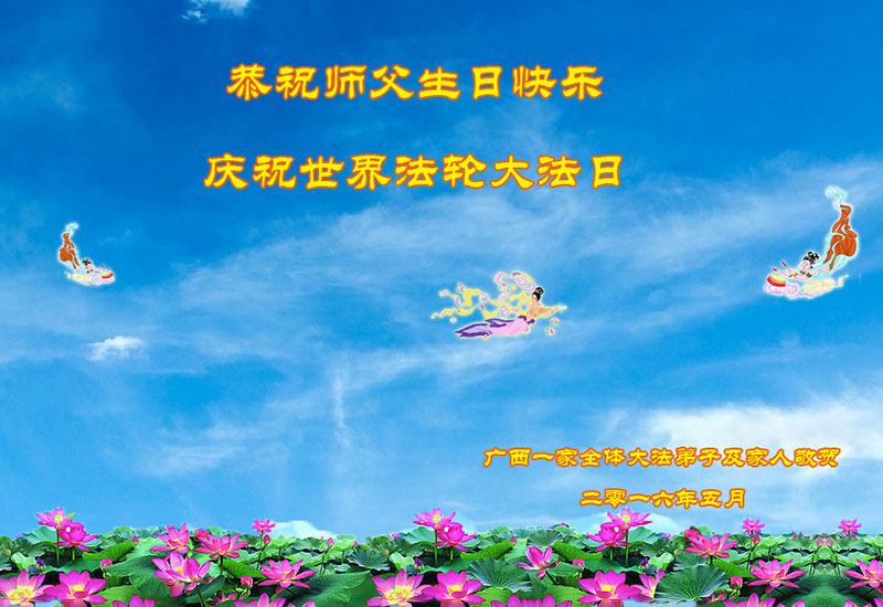 广西一家全体大法弟子及家人恭祝师父生日快乐!庆祝世界法轮大法日!