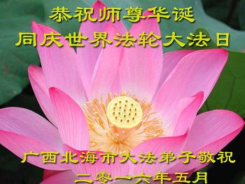 广西壮族自治区北海市大法弟子恭祝师尊生日快乐!恭贺5.13世界法轮大法日!