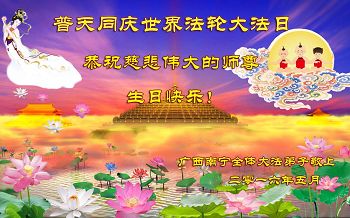 全体广西南宁大法弟子恭祝慈悲伟大的师尊生日快乐!