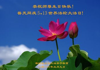【明慧网二零一六年五月十三日】 美国印第安纳中部大法弟子恭祝师尊生日快乐!