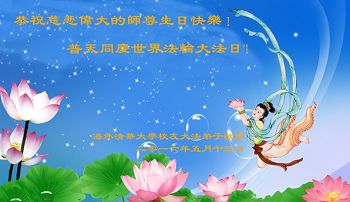 海外清华大学校友大法弟子恭祝慈悲伟大的师尊生日快乐暨世界法轮大法日!