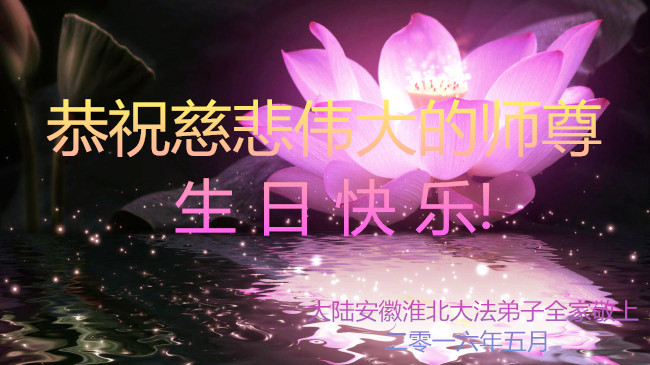 恭祝慈悲伟大的师尊生日快乐!恭祝5.13世界法轮大法日! 弟子们叩谢师尊的慈悲救度!千言万语难表师恩!唯有努力做好三件事,助师正法,完成史前大愿,原名随师还!谢谢师尊!谢谢慈悲伟大的师尊!!! 天津河西区大法弟子 安徽省淮南大法弟子恭祝伟大师尊生日快乐!
