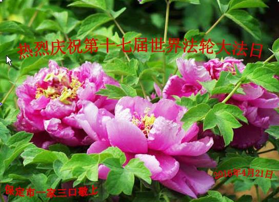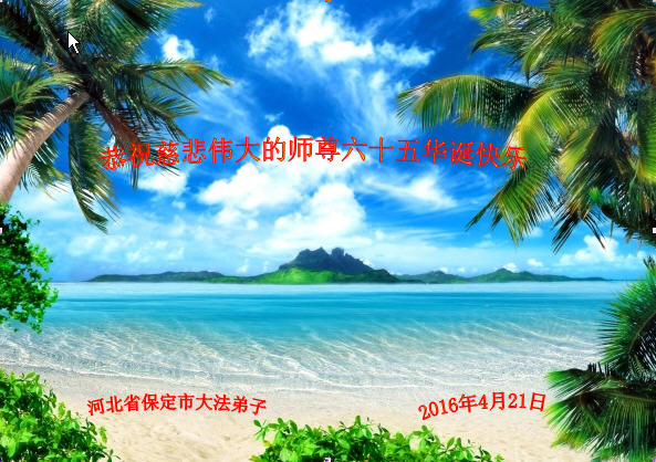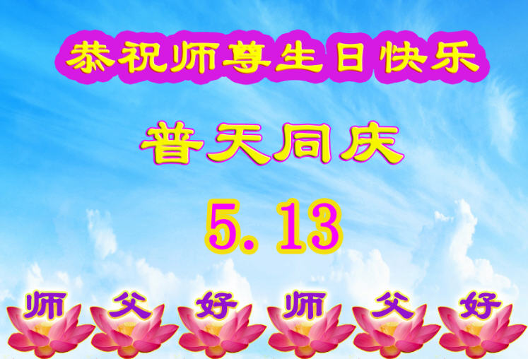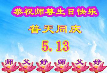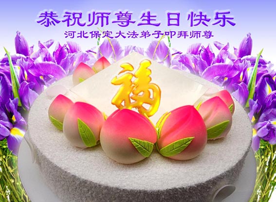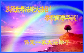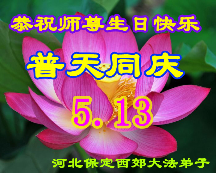 在这伟大的历史时刻,我们能成为大法弟子,能成为师父您的弟子,感到无上的荣幸,谢谢恩师的慈悲苦度!师父那慈悲伟大的胸怀,时时感召着我们,法轮大法处处洗涤着我们那不纯的思想、身体和那不纯的天体,师父给了我们一切,我们必会用我们的生命完成这伟大的历史使命——助师正法。 河北保定大法弟子恭祝恩师生日快乐!普天同庆世界法轮大法日!