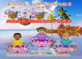 河北省保定市涿州双塔区一学法小组大法弟子恭祝师尊华诞!恭贺世界法轮大法日!