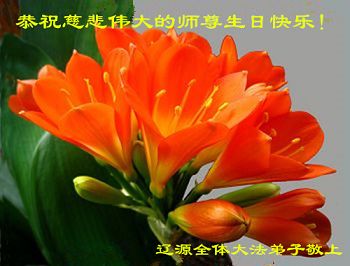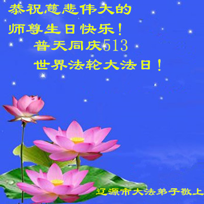 师尊好!师尊辛苦了!师尊传法二十四年,我将得法十九年了。扪心自问,弟子没有做好,人心、执着心在阻碍着,让师尊操尽了心。尽管弟子什么也看不见,但深深感受到、悟 到师尊时刻都在看护着我,不停的点化着我,帮助我做好,帮助我走出魔难,度过苦关。使一个满身业力的 我成为一个修心向善的大法弟子。改变了自己,还救度着被邪恶毒害的众生,让更多的人找回生命的真谛。在这普天同庆的日子里,再次仰望师尊,弟子无以回报慈悲伟大师尊的救度之恩,弟子唯有精進,珍惜师尊给我们留下的宝贵时间,用心学好法,用大法归正自己,做好三件事,救度更多的众生,真正达到大法弟子的标准。让师尊多一些欣慰,少一些操劳,兑现自己的誓约。在此神圣日子,弟子诚心恭祝伟大师尊生日快乐!恭祝世界法轮大法日! 弟子叩拜师尊! 吉林省辽源大法弟子恭祝慈悲伟大的师尊生日快乐!