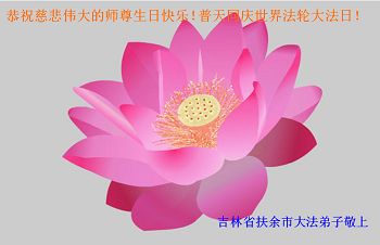 我一定听师尊的话,信师信法,利用诊所多讲真相,多救人!请师尊放心! 吉林省扶余市一位大法弟子恭祝慈悲伟大的师尊生日快乐!共同庆祝世界法轮大法日!