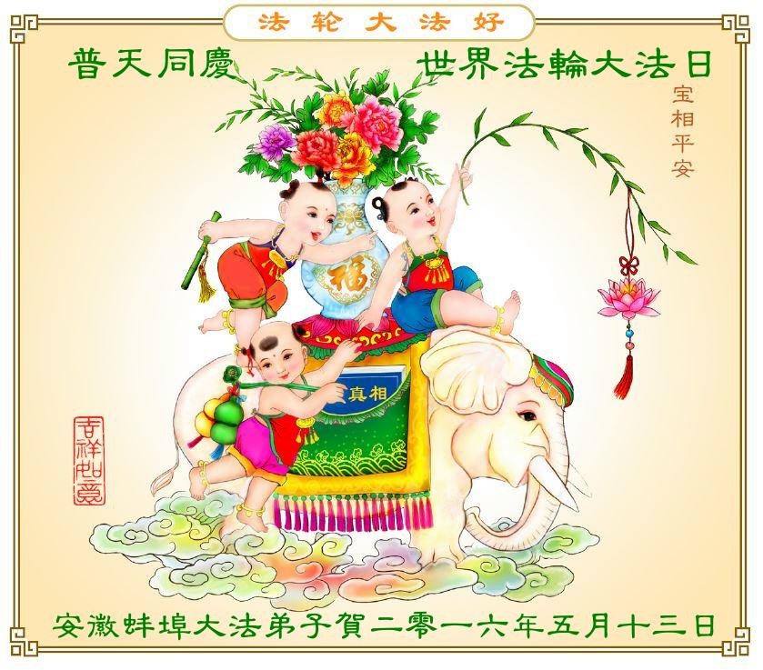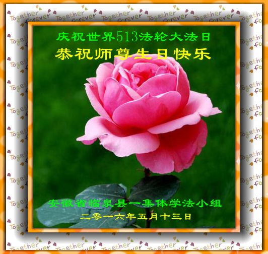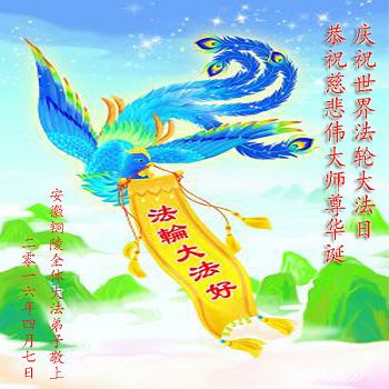 【明慧网二零一六年五月八日】 安徽大法弟子恭祝师尊华诞!隆重庆祝世界法轮大法日!
