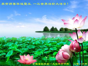 安徽省安庆市枞阳县一大法弟子恭贺师尊华诞暨五一三世界法轮大法日!
