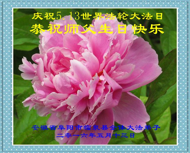 安徽省阜阳市临泉县全体大法弟子恭祝师父生日快乐!庆祝世界5.13法轮大法日!