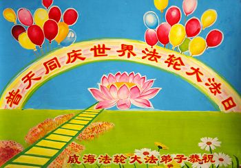 大陆山东威海姐妹恭祝师尊华诞暨法轮大法日