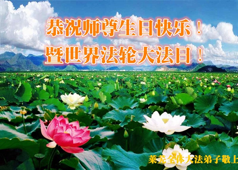 山东莱芜市大法弟子恭祝慈悲的师尊华诞暨世界法轮大法日!