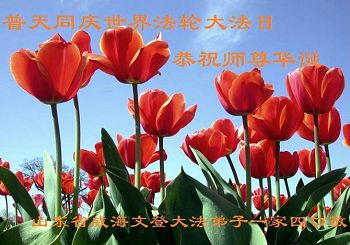 山东省威海文登大法弟子一家四口恭祝师尊华诞!普天同庆世界法轮大法日!