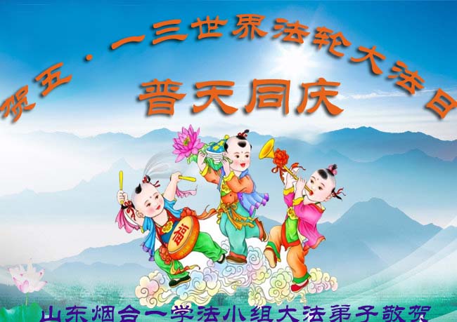 山东烟台一学法小组大法弟子贺五一三世界法轮大法日!