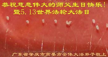 广东省肇庆市高要市全体大法弟子恭祝慈悲伟大的师父生日快乐暨5.13世界法轮大法日!