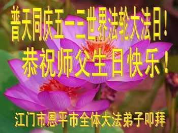 广东省江门市恩平市全体大法弟子普天同祝师父生日快乐!普天同庆世界法轮大法日!
