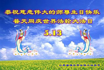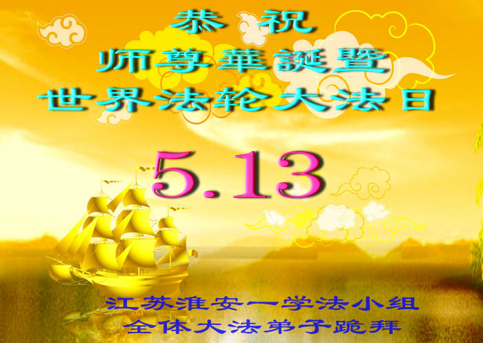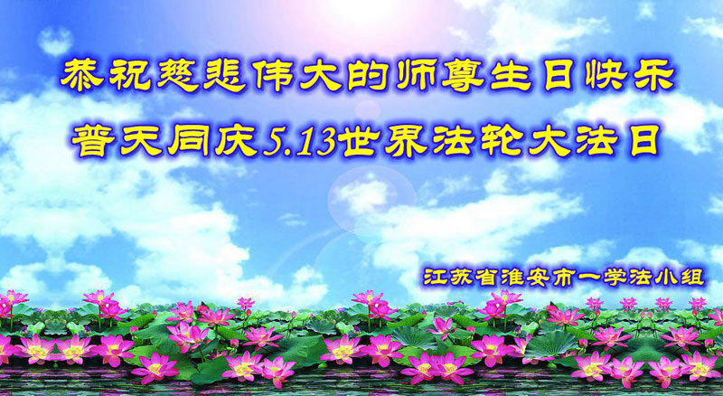 江苏省淮安市一学法小组大法弟子恭祝慈悲伟大的师尊生日快乐!普天同庆世界法轮大法日!