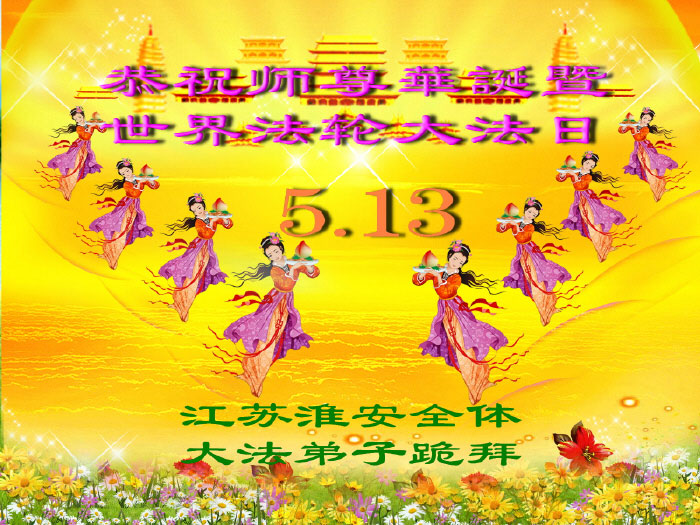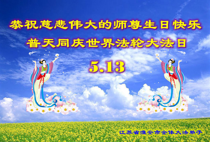 庆祝法轮大法传世二十四周年!感恩师尊慈悲救度! 江苏淮安全体大法弟子跪拜恭祝慈悲伟大的师尊生日快乐!恭祝法轮大法日!