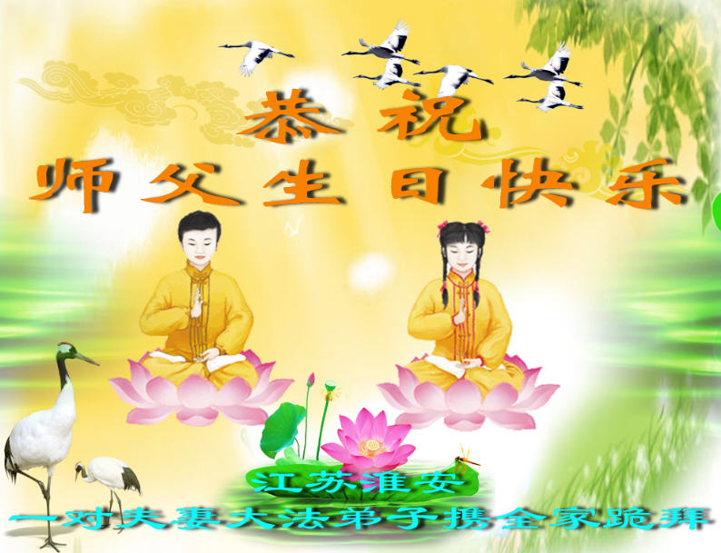 庆祝法轮大法传世二十四周年!感谢师尊的救度之恩! 江苏省淮安一家四名大法弟子跪拜恭祝慈悲伟大的师尊生日快乐!庆祝法轮大法传世二十四周年!感恩师尊慈悲救度!