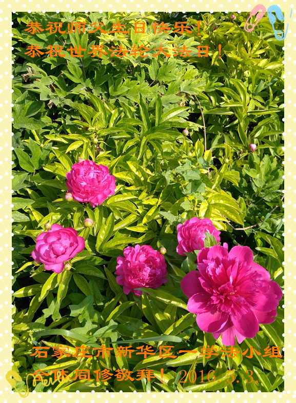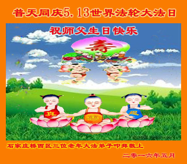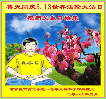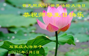 【明慧网二零一六年五月八日】 河北省石家庄白佛村大法弟子恭祝师尊生日快乐!普天同庆世界法轮大法日!