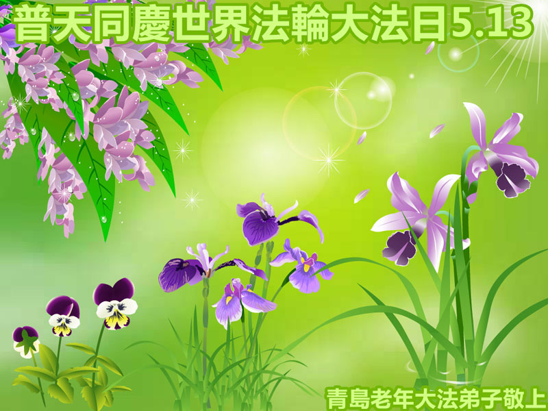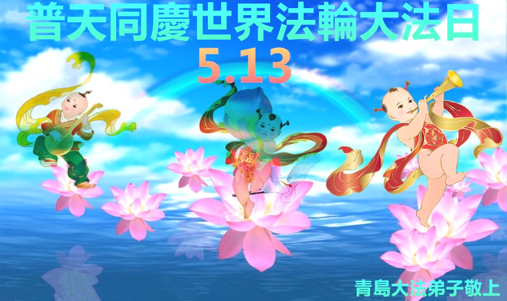 山东省青岛大法弟子恭祝伟大的师尊生日快乐!恭贺第十七届世界法轮大法日!