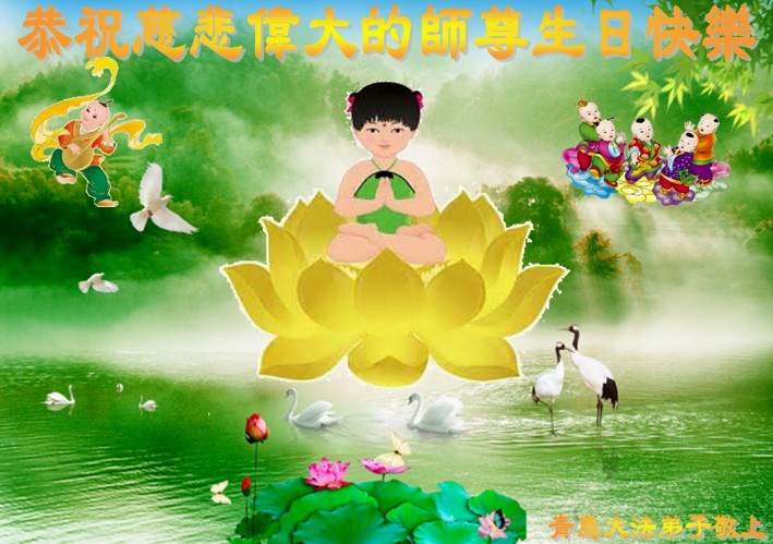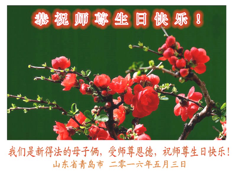 山东省青岛大法弟子恭祝师尊生日快乐!