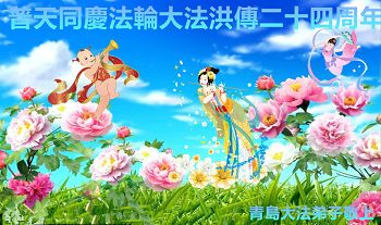 山东省青岛大法弟子普天同庆法轮大法洪传二十四周年!